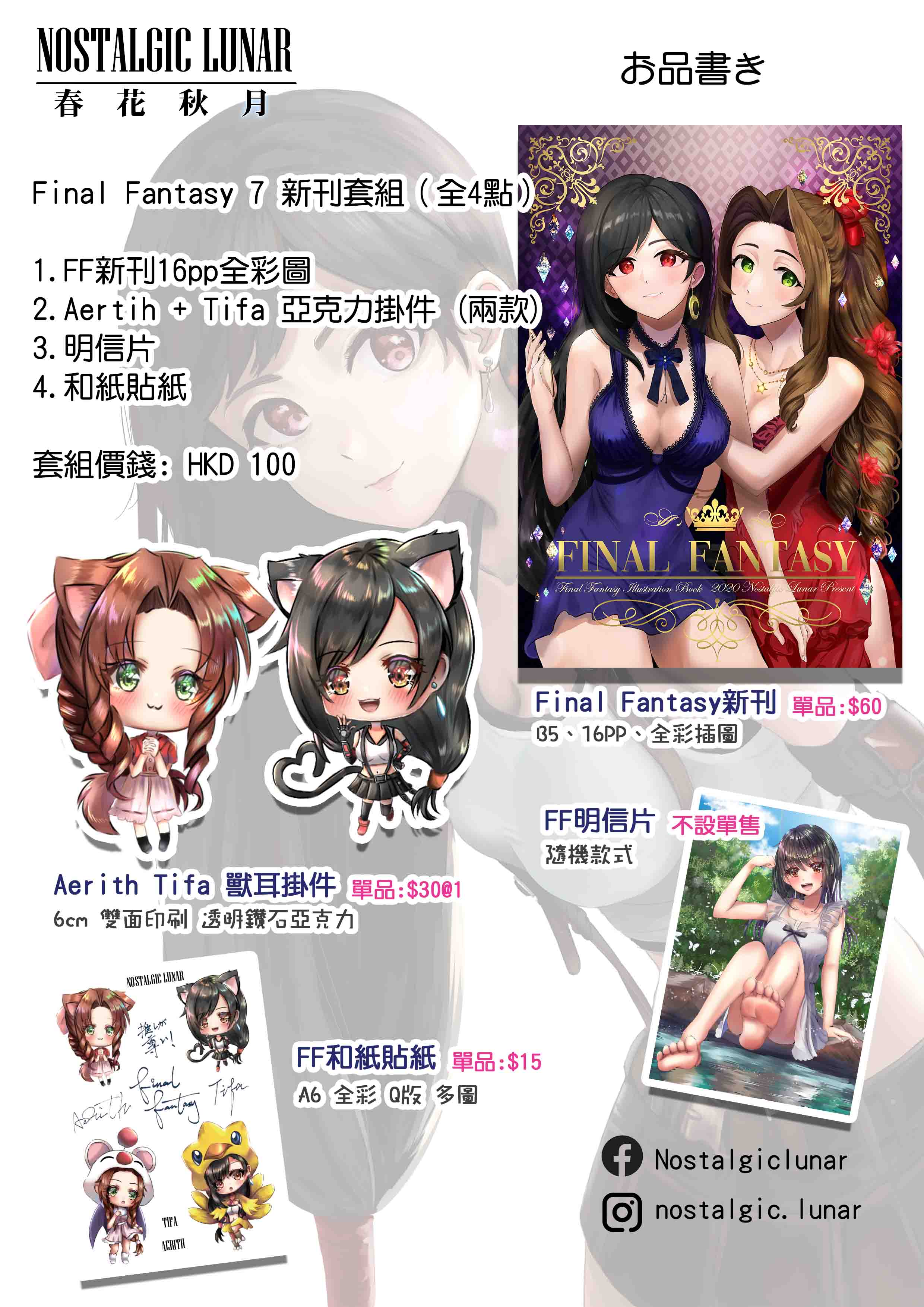 套組: 新刊 + Tifa/Aerith 掛件各乙隻* + 明信片x2 + 和紙貼紙x1