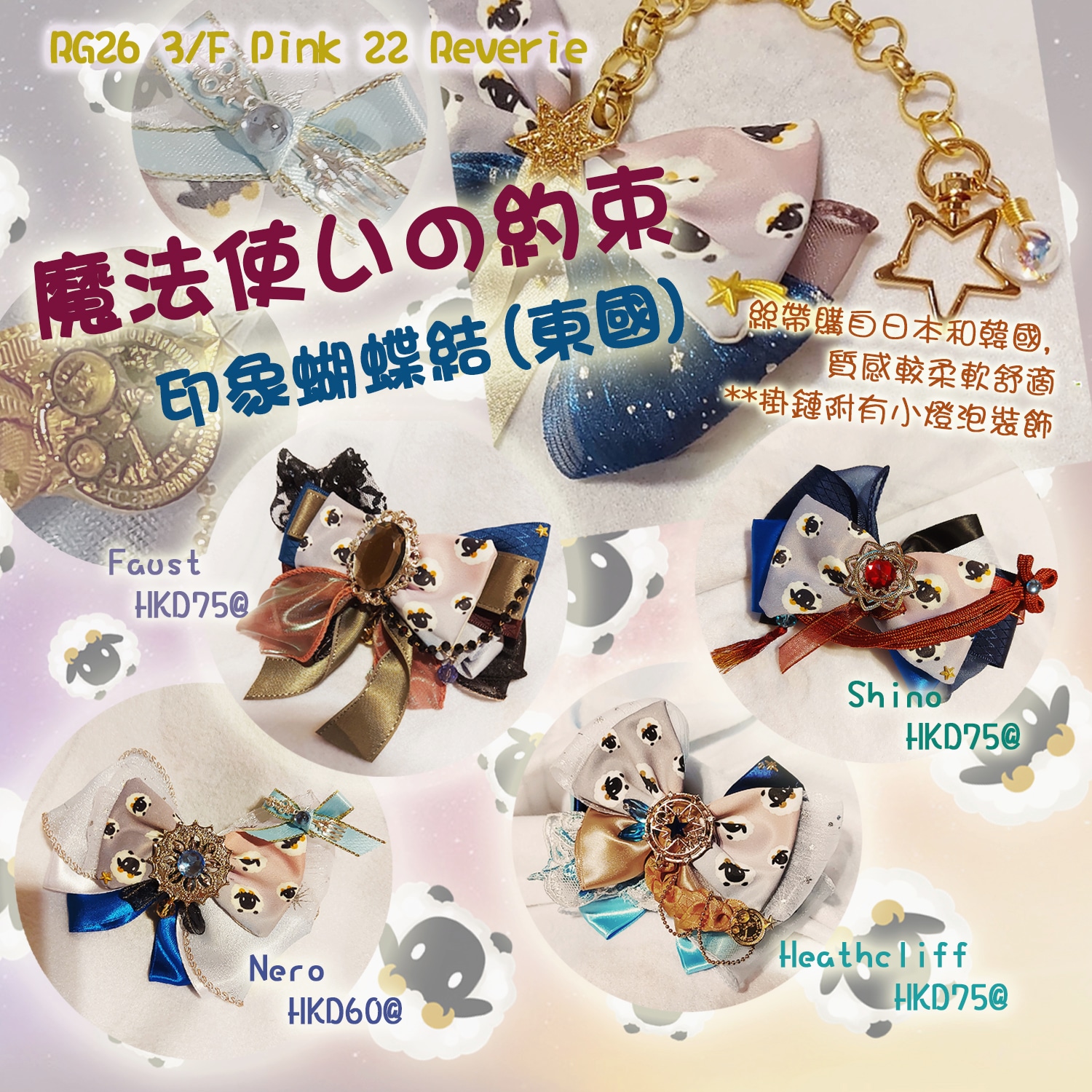 全手縫, 完美主義者請慎重考慮🙏🏻🙏🏻🙏🏻 絲帶購自日本和韓國, 質感較柔軟舒適, 掛鏈跟上次一樣都有小燈泡💡