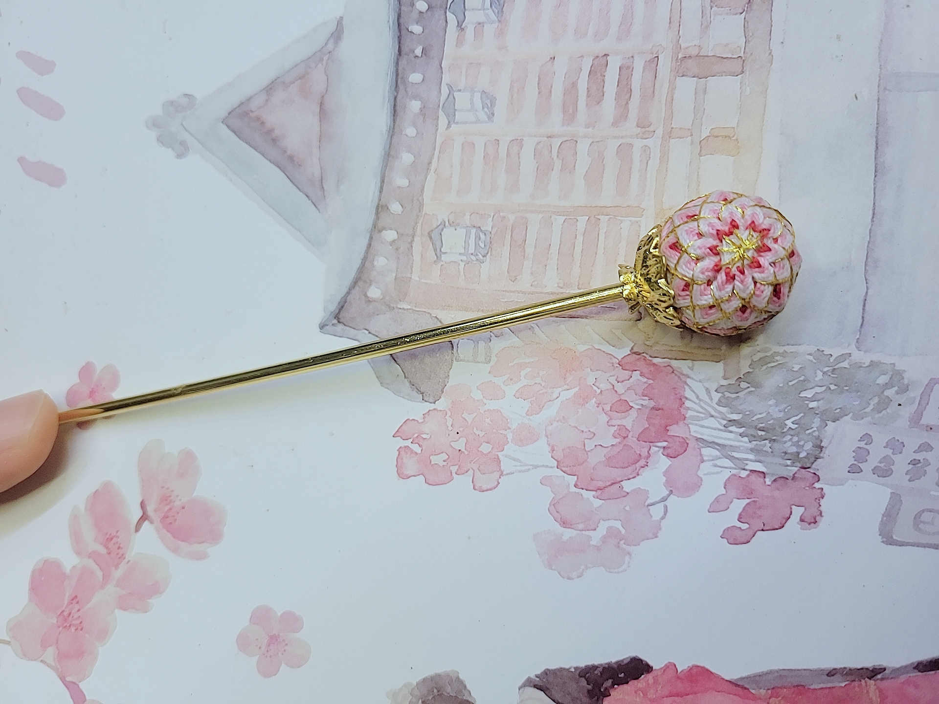 手鞠球髮叉「重瓣菊」(粉紅)