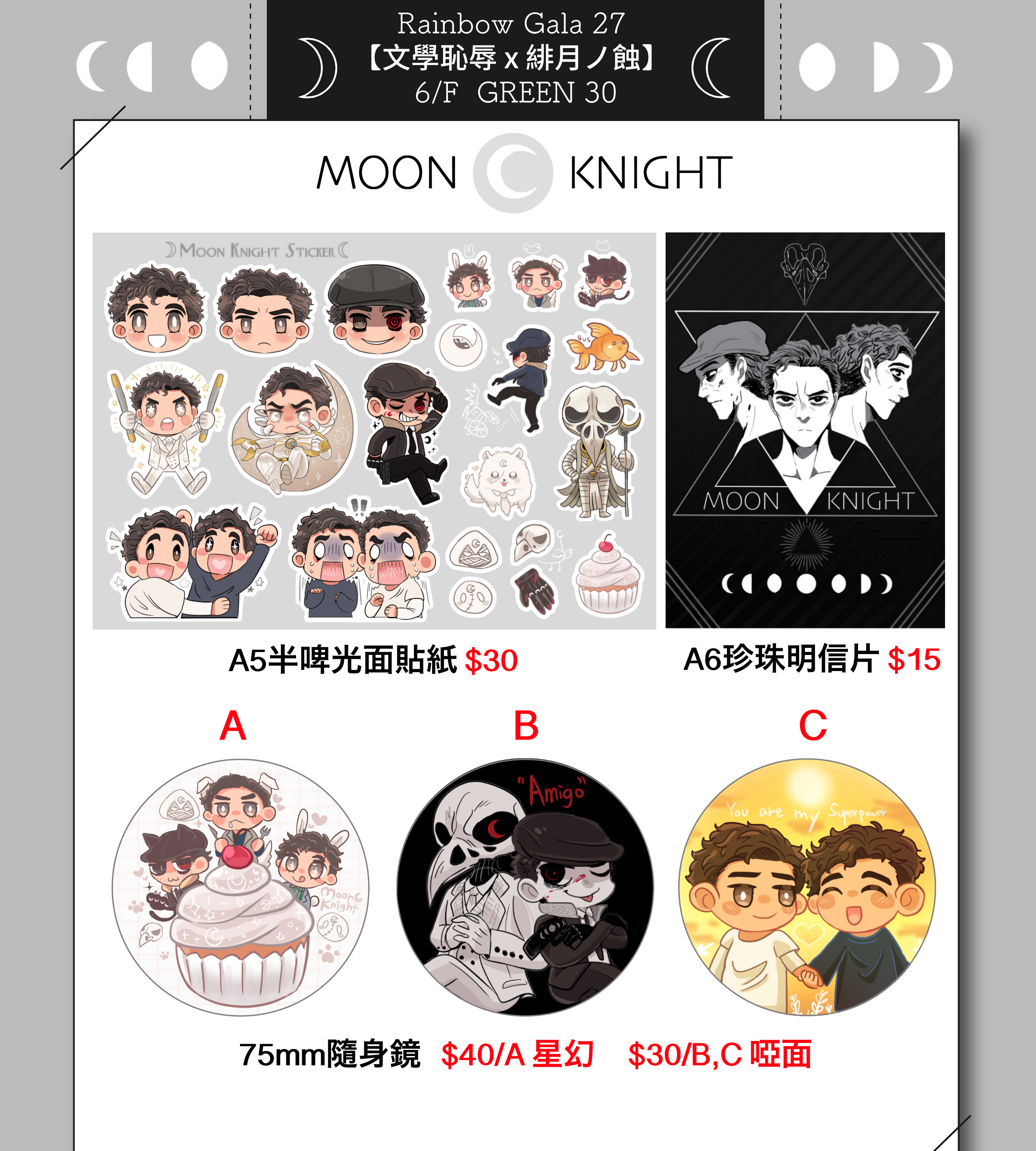 A5半啤光面貼紙 A6珍珠明信片|75mm隨身鏡|3款