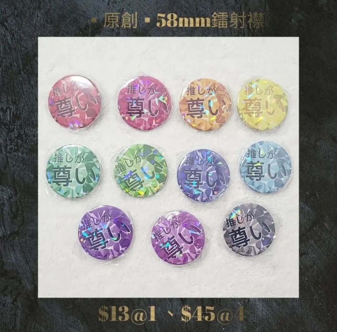 58mm尺寸鐵背底扣針再加鑽石切面+鐳射效果美噠噠~
