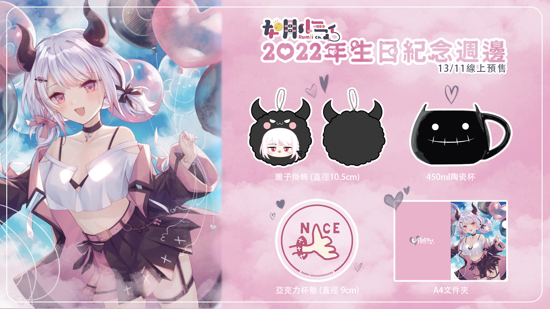 如月瑠美2022年生日紀念週邊|團子掛飾/陶瓷杯/亞克力杯墊/A4文件夾