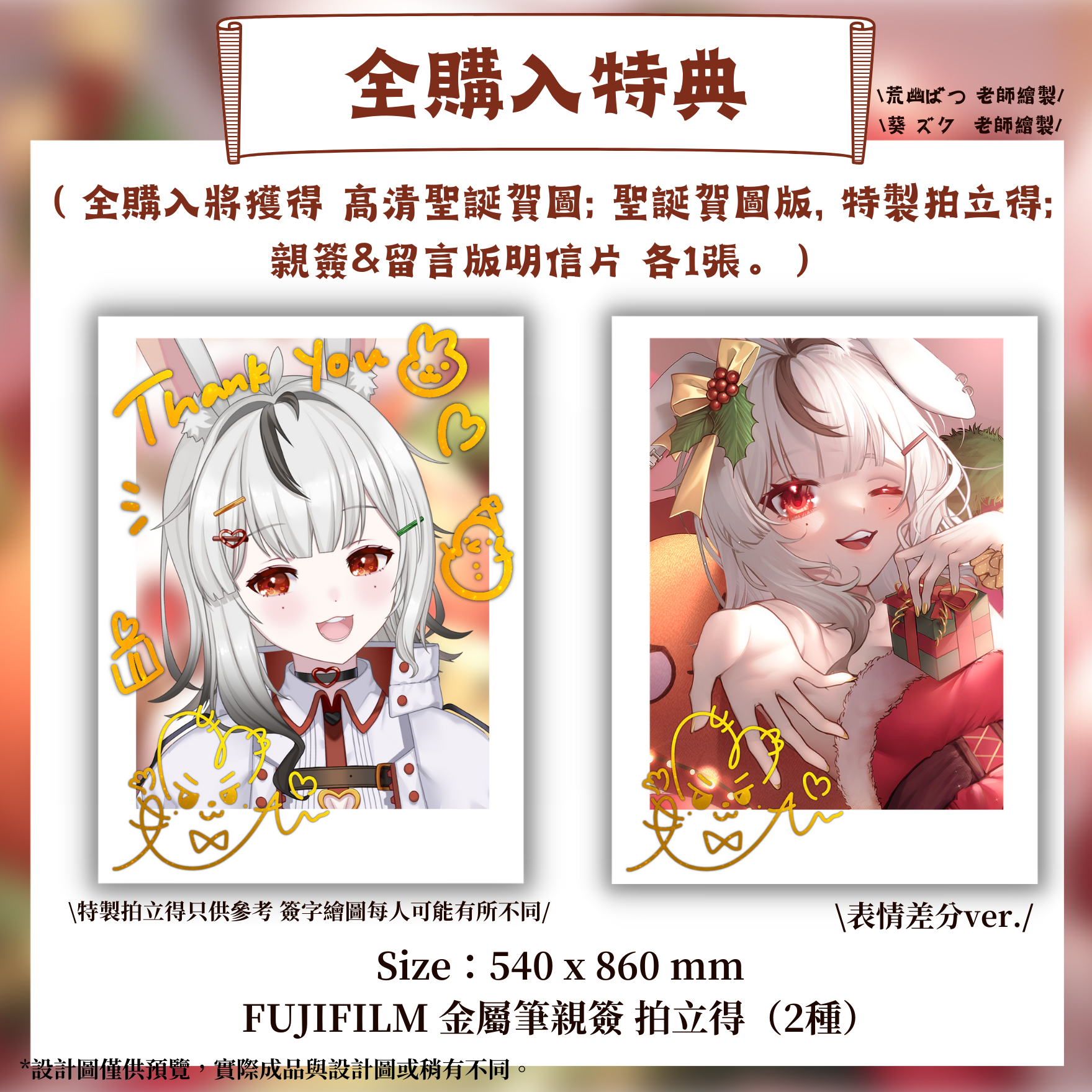 ※凡購買任一套組,將獲得 高清聖誕賀圖 原圖|賀圖版拍立得|特製拍立得|親簽&複製留言版明信片 各1張。