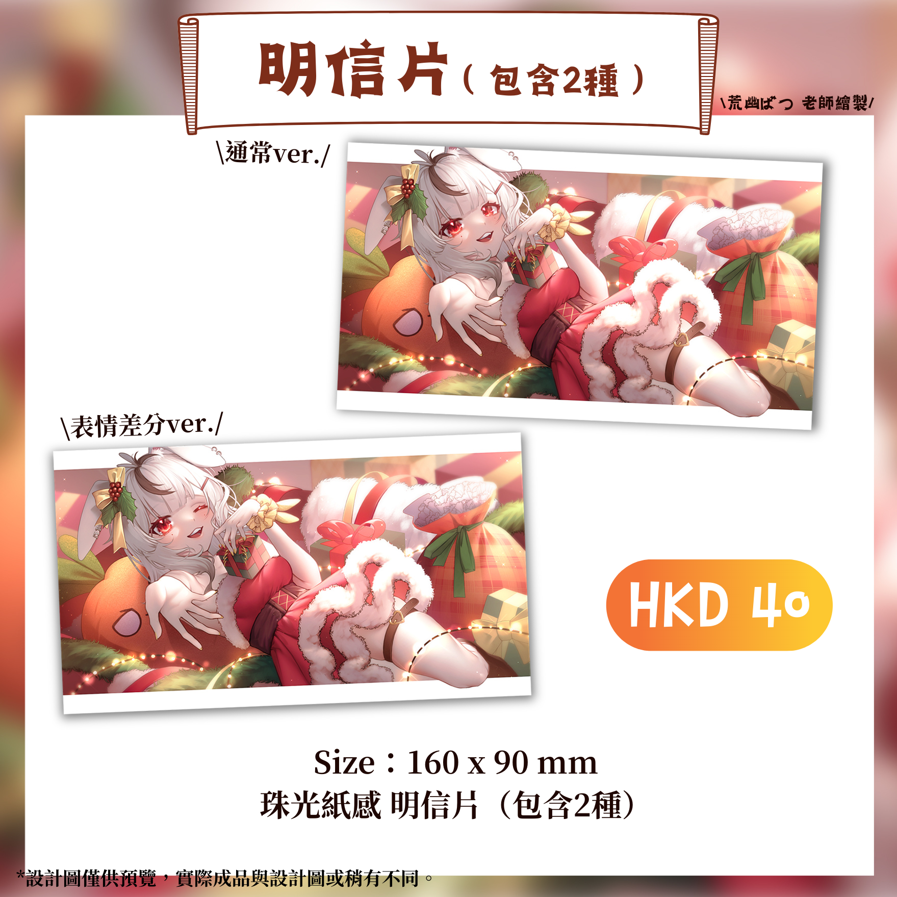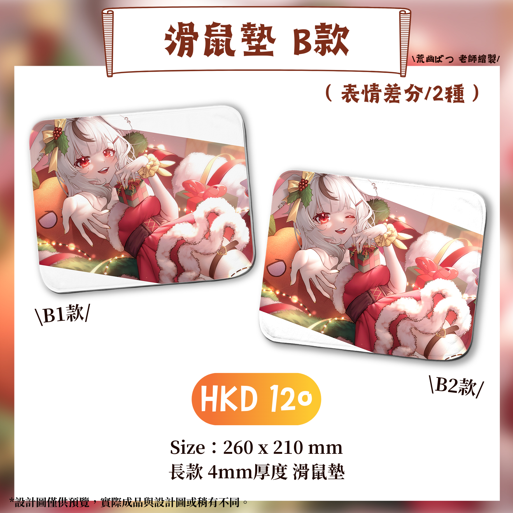 香港虛擬實況主|如月兔莓|2022年聖誕限定紀念週邊|滑鼠墊 / 明信片 / 襟章 / 色紙