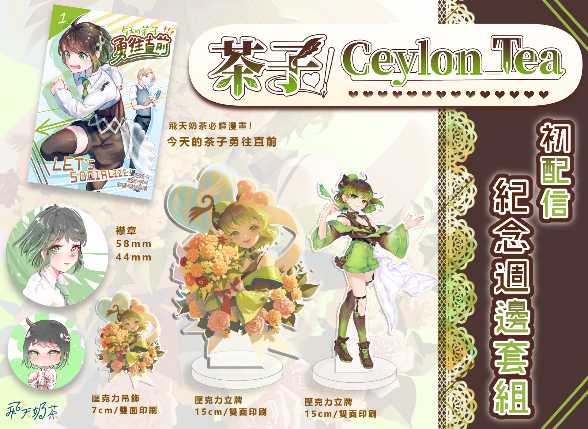為慶祝茶子初配信而特別準備的週邊商品,茶子教徒必備!💚