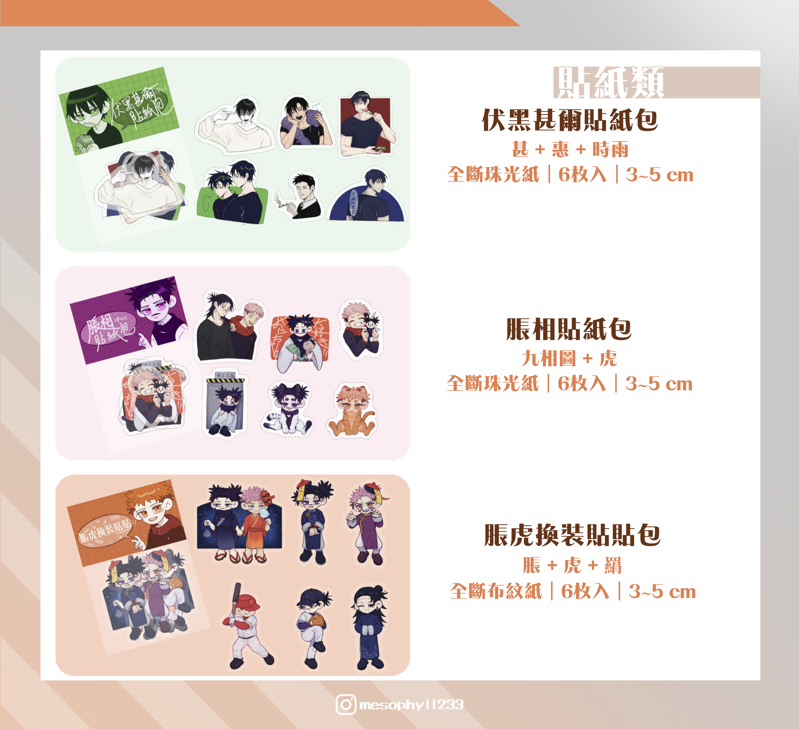 甚爾、脹相、虎杖相關貼紙包 共3款