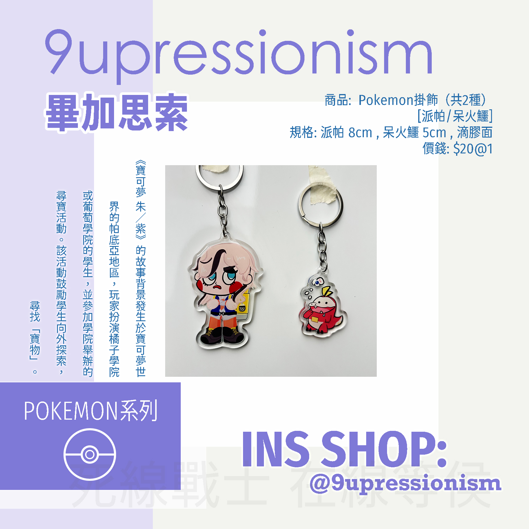 規格: 派帕 8cm , 呆火鱷 5cm , 滴膠面價錢: $20@1