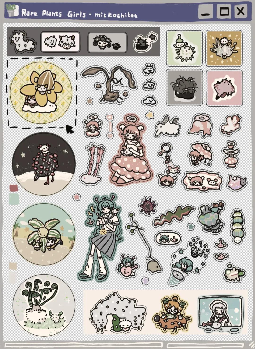 珍奇植物少女貼紙(雙透星星)