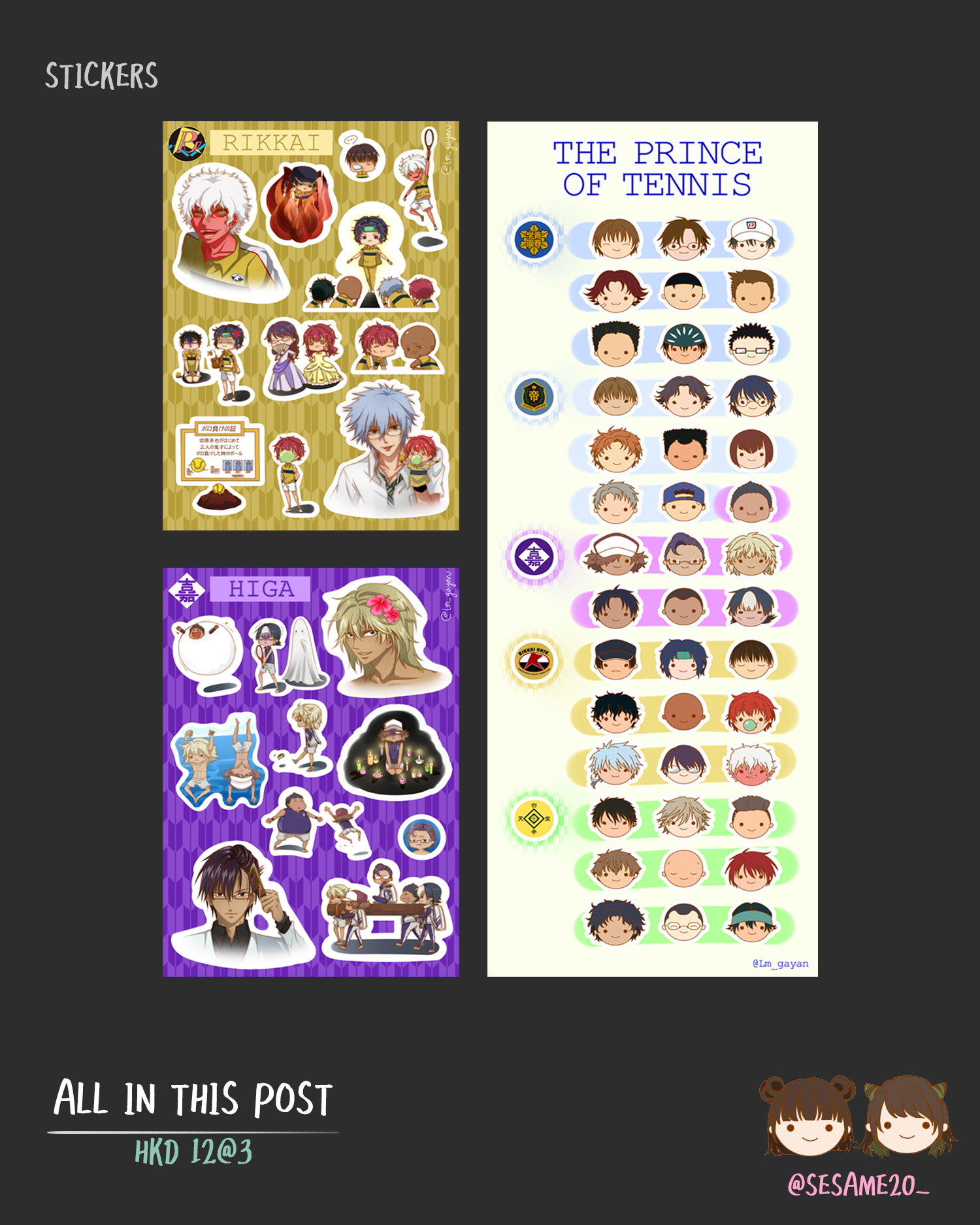 HKD12@3 (默認每款一張,可聯絡賣家修改)